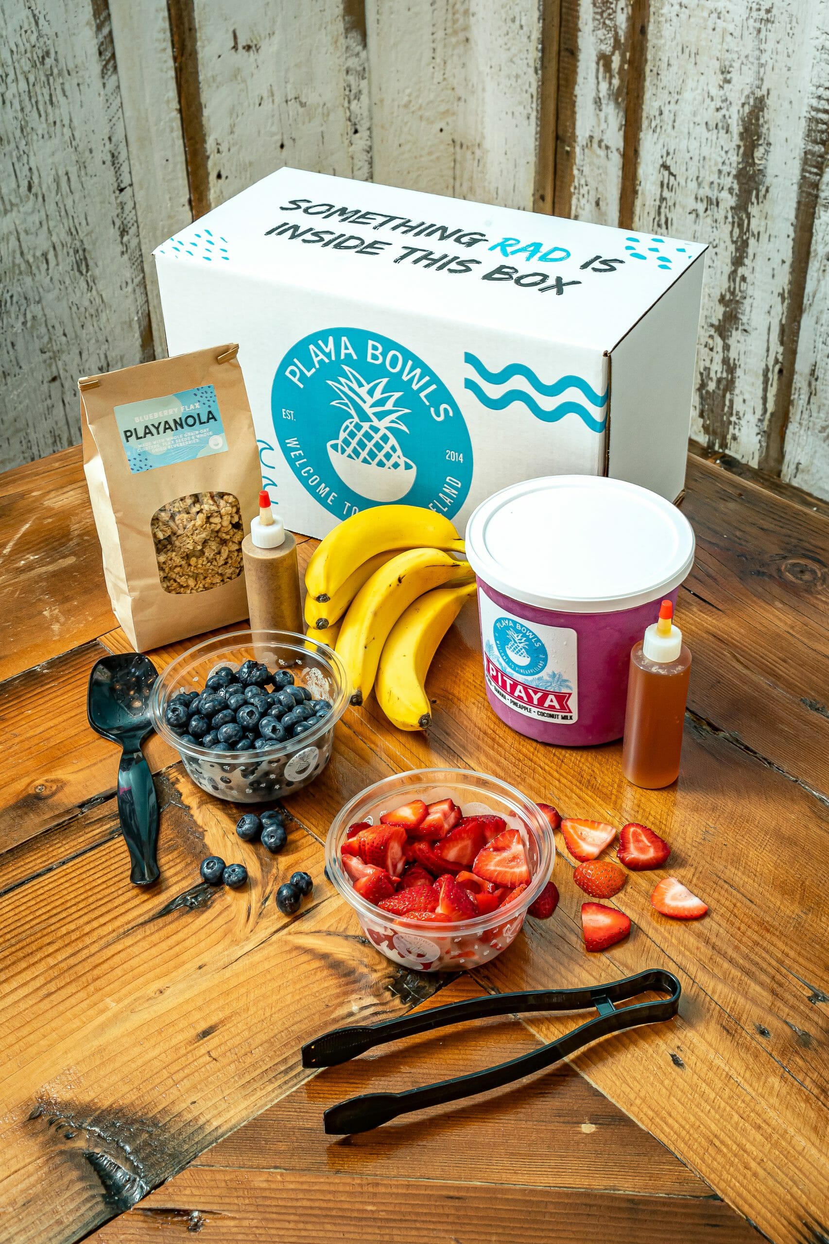 Each package is custom built to your liking. You will be able to choose different options for the base: (acai, pitaya, mango, coconut, green, and/or banana), drizzles (peanut butter, honey, almond butter, and/or Nutella®), fresh fruit (blueberry, pineapple, banana, strawberry, mango, and/or kiwi), and each order comes with our playanola.